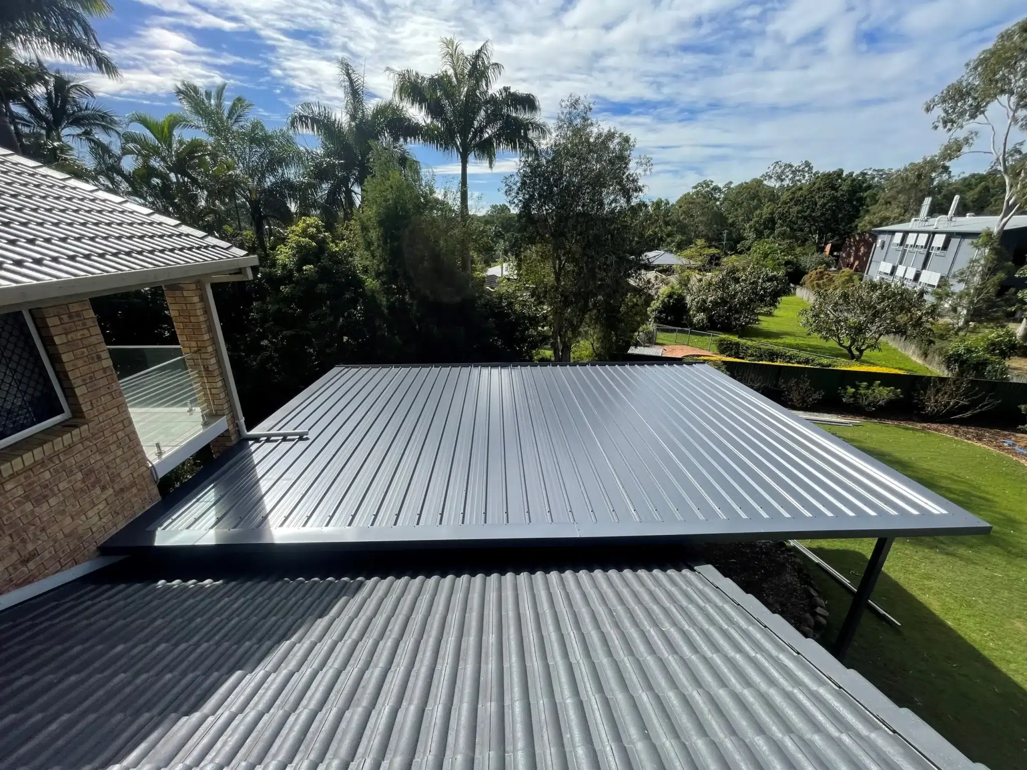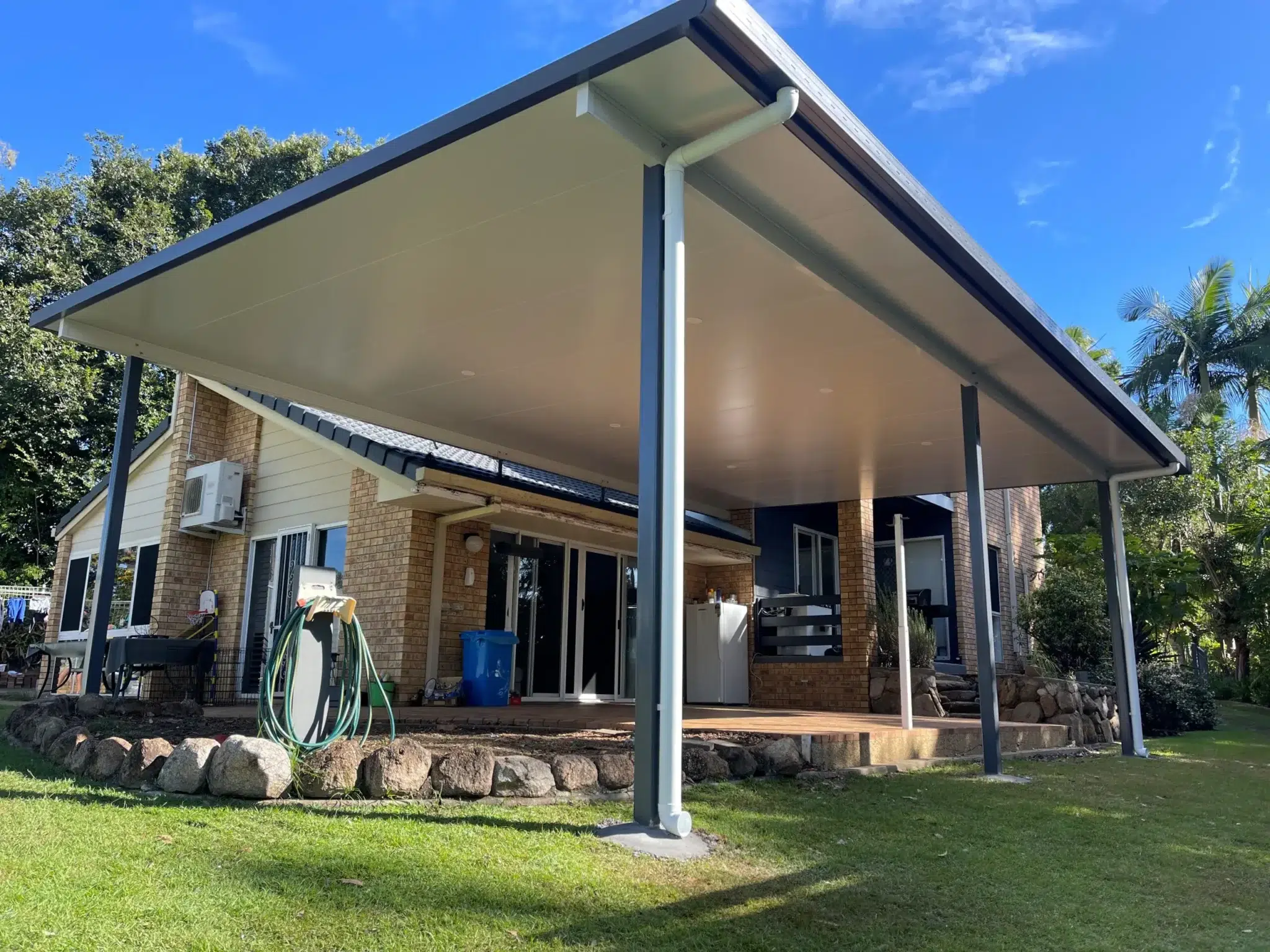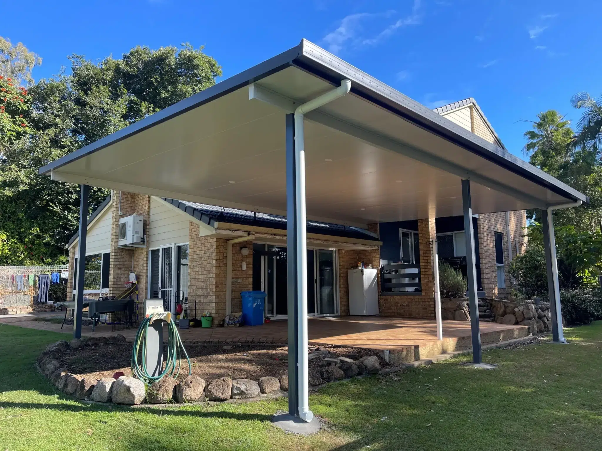 Following a detailed design consultation, the Brisbane team designed this stunning flyover patio for our dear customers. At 9m wide and 6.6m long, this insulated patio is perfectly positioned over an existing concrete slab and offers plenty of outdoor living space.