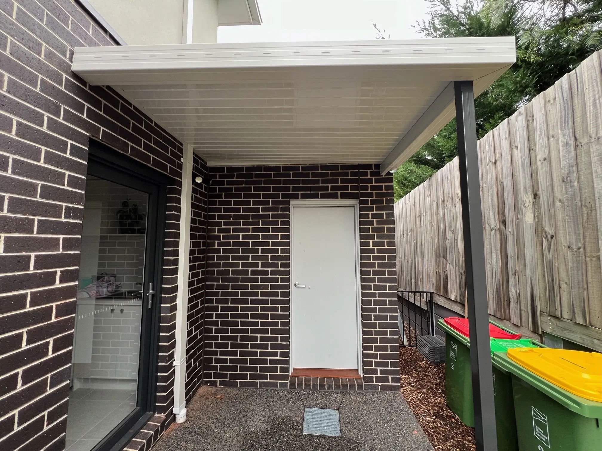 Stage 2 is a practical steel verandah that protects the laundry and garage exits. At 2.3m x 1.7m it offers generous protection and is colour-coded to match the insulated verandah. Another outdoor living space we can wait to see once complete.