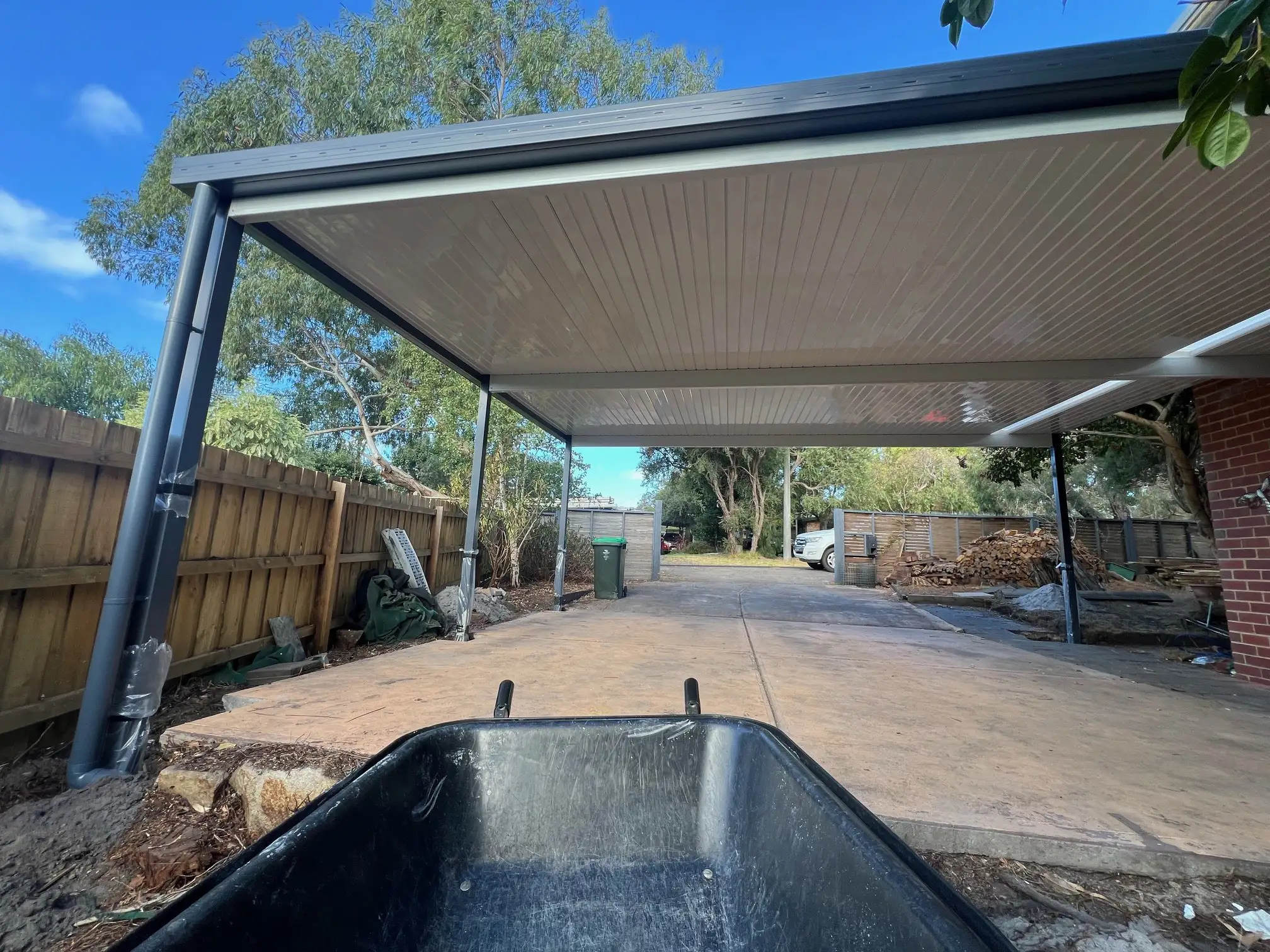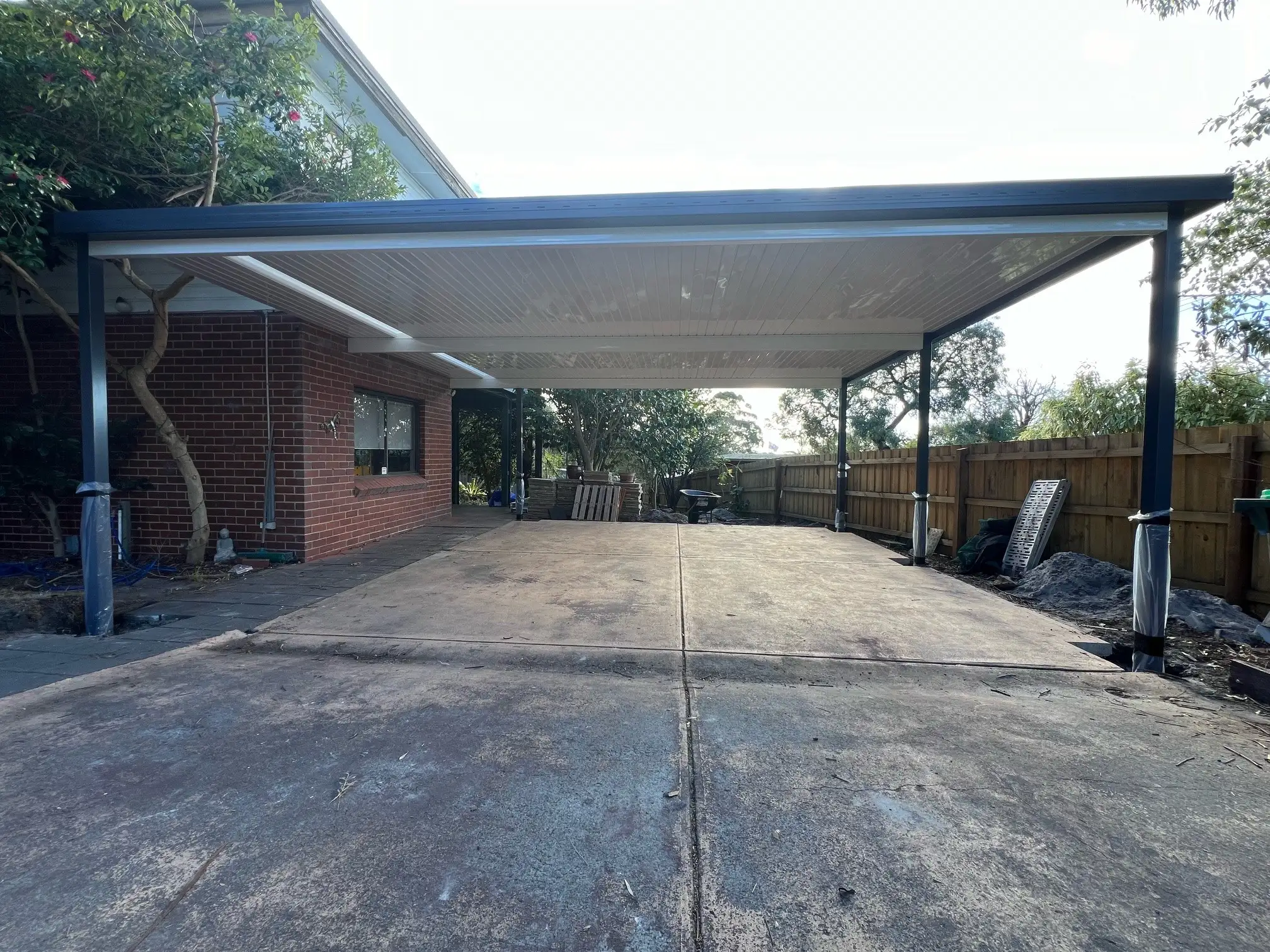 After carefully considering our customer’s goals, our Melbourne designers prepared a stunning double carport. Using Coolskin steel roofing, the new steel carport measures 6m deep and 7m wide. The dimensions make it larger than a traditional 6m x 6m double carport.