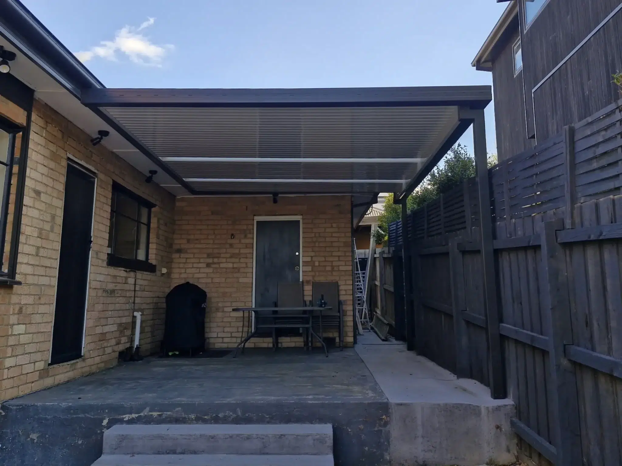 The new steel patio is attached to the fascia and measures 5m long and 3.7m wide. Offset posts on the boundary ensure every last piece of useable space is accounted for. Polycarbonate roof inserts deliver plenty of natural light to the kitchen and home interior.